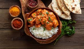 Tandoorissa grillattuja kananrintafileitä cashew-sipuli-tomaatti-kermakastikkeessa.