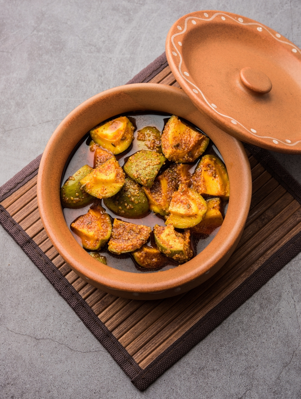 Tangy and spicy mango pickle.