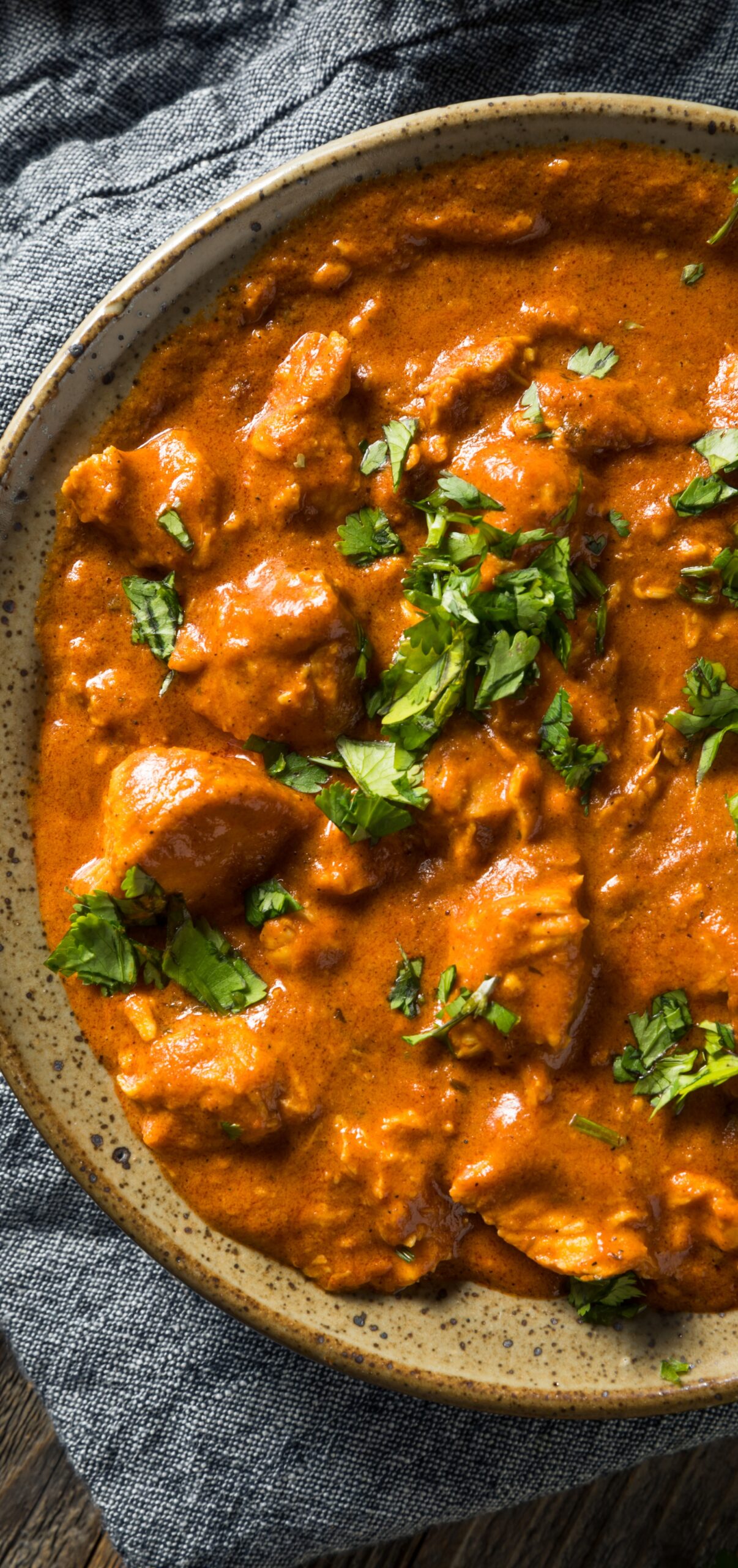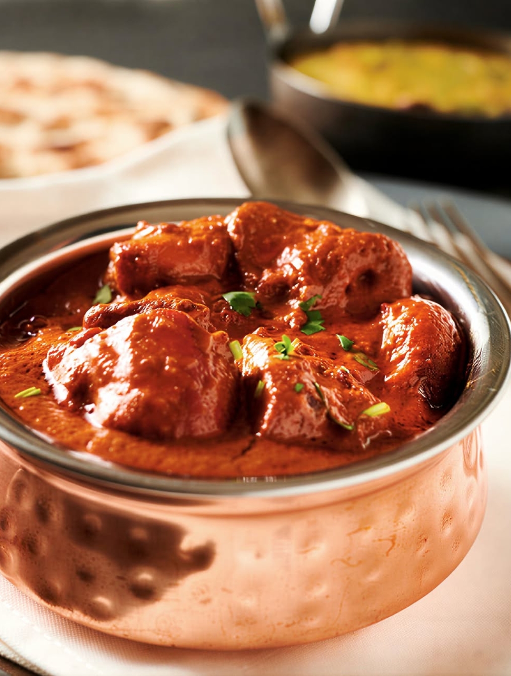 Succulent chicken in velvety tomato, nuts and butter sauce.