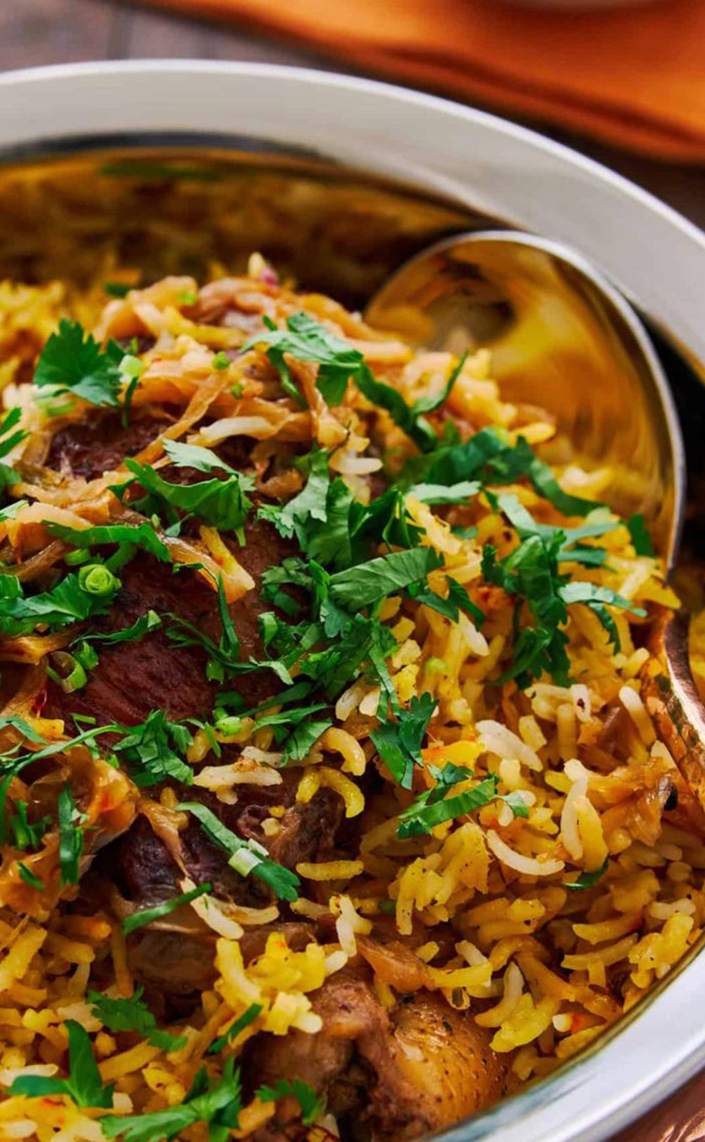 Fragrant basmati rice layered with tender marinated chicken, slowcooked with aromatic spices.