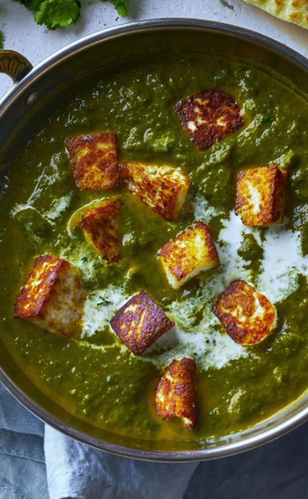 Paneer cooked with fresh spinach and mild spices for a wholesome flavour.