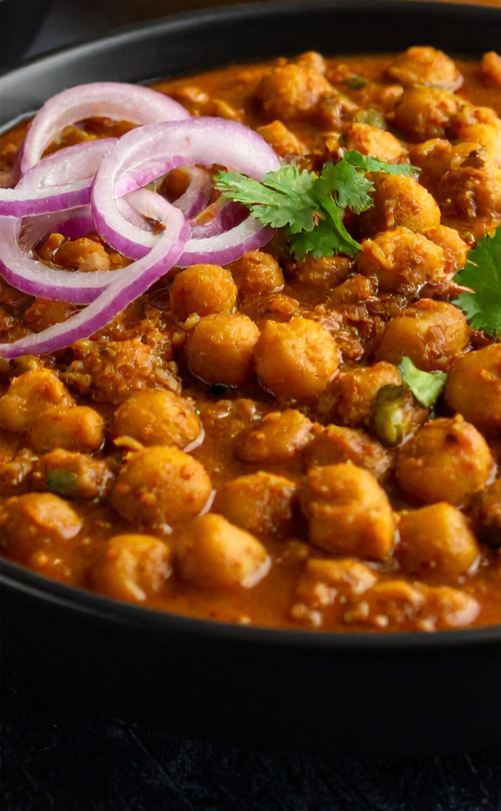 Chickpeas cooked in a flavorful spiced tomato gravy.