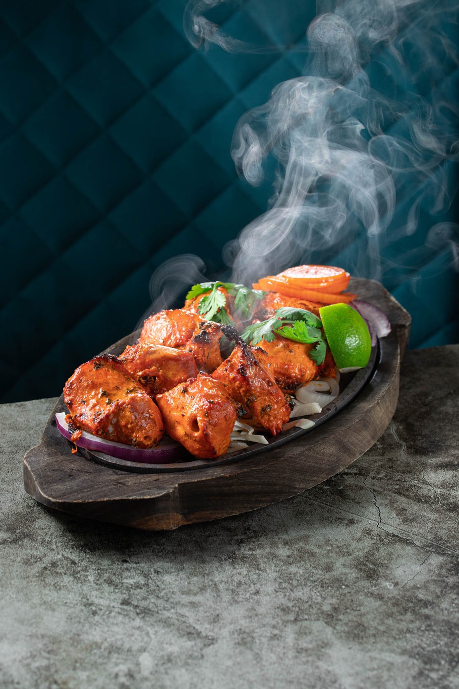Marinated with yogurt, garlic, and aromatic spices, then grilled in a tandoor oven.